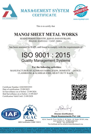 Manoj Sheet Metal Works is a leading manufacturer of sheet metal storage systems and industrial furniture, offering a wide range of durable, powder-coated products for commercial, industrial, and domestic use. With years of expertise in metal fabrication and precision engineering, we have built a strong reputation for delivering quality, durability, and innovation in every product.