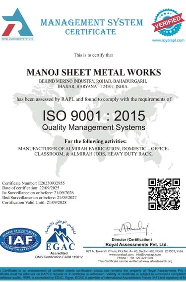 Manoj Sheet Metal Works is located in Haryana, India, where we design and manufacture high-quality metal furniture and storage solutions.